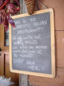 I saw this sign as I was taking a walk in Trastevere in June of this year. I guess this was supposed to make you want to eat in the restaurant but I confess, it didn’t inspire me. It is true that tourists are often treated to ridiculous prices and not great food in some restaurants in Trastevere. Luckily that is not the case everywhere.
