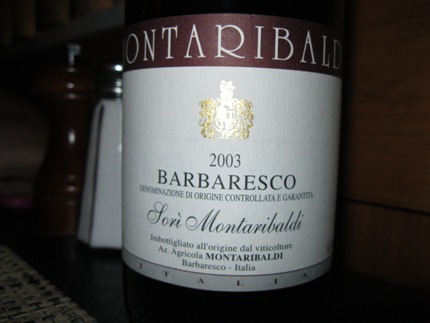 I gave myself a nice little treat and had a lovely 2003 Montaribaldi Barbaresco with Sasha Smith and Diane Letulle last night at Accademia di Vino Broadway. They are a client of mine so I won’t go on and on about the food or anything else but I do want to mention the great deal that they have on Monday nights – Half priced bottles of red wines for those over $80, like the Barbaresco I ordered and whites over $60. Last night was my first Monday there but won’t be my last. I never order Barolos or Brunellos in a NYC restaurant because of the markups but that looks like it’s going to change thanks to this 50% off deal.