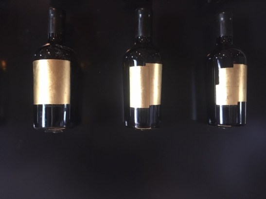 The bottles and the gold leafing were done by Giovanni Moretti. The bottles were made by descendants of the famous gold leafing family called Battiloro which literally means hitting gold. The labels are applied by hand and then the bottles are once again put into the furnaces in Murano for their finishing touches.