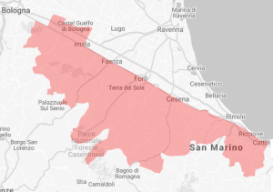 Romagna Sangiovese comes from seven towns around the province of Bologna, 24 in the province of Forli/Cesena, five towns in the province of Ravenna and 19 in the province of Rimini. The Consorzio has a wealth of information on the area.
