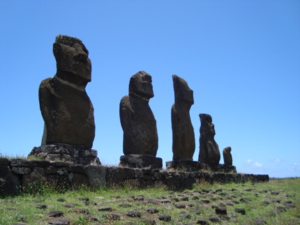 Hard as it may seem to believe, that is truly the color of the sky on Easter Island, a gorgeous midnight blue. The Moai on this beach have been reconstructed but originally all of the Moai had these top knots. They must be about five feet tall alone and weigh about 40 tons.