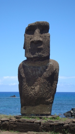All the Moai we saw were standing except for the one in the next photograph. Some faced the sea and some faced inward towards the land. Easter Island has always had a very small population so these sculptures which are the deification of one’s ancestors were really built for families. They are quite formulaic with the head being 3/5 the size of the body.