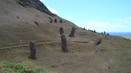 They were truly spectacular and as always with these types of monuments, I found myself wondering how in the world they were able to carve such enormous statues. Not all of the Moai were in good shape as this photo shows. Many were destroyed, some had disintegrated and others were merely toppled over and eroded by the wind and the sea breezes.